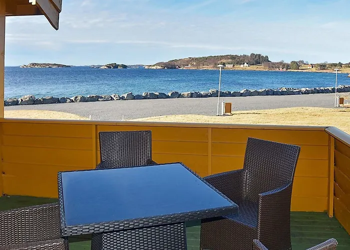 6 Person Holiday Home In Aukra ligt binnen 3 km van Aukra Church en nodigt gasten uit om te ontspannen op een terras.